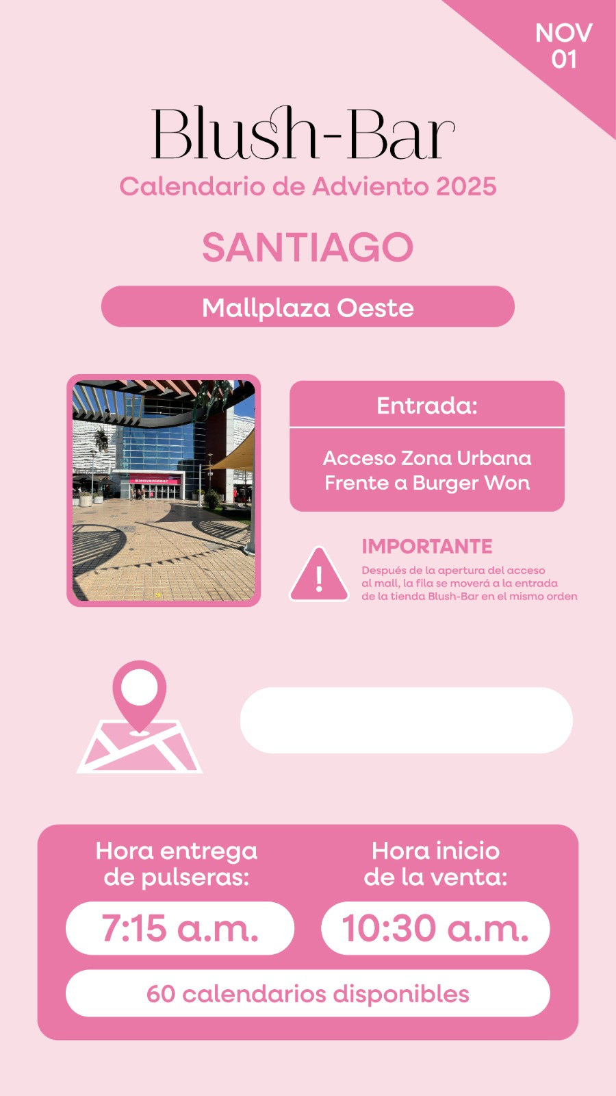 Este 1 de noviembre, sé parte del lanzamiento del Calendario de Adviento Blush-Bar 2025, con 26 productos de maquillaje, cuidado facial y perfumes a un valor imperdible de $145.000 CLP.